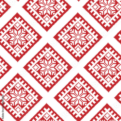 Traditional Ethnic Latvian Ornament in Red and White. Christmas Seamless Pattern
