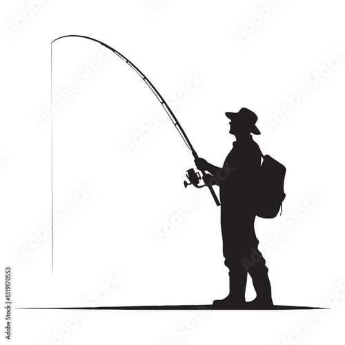 Traditional Fisherman silhouette, keeping old fishing methods alive - Fisherman illustration - Minimalist Fisherman vector - Profession silhouette