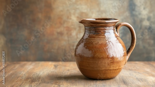 Traditional handmade pottery jug captured in detail, emphasizing the unique craftsmanship and texture of the pottery. Ideal for projects needing a traditional pottery theme, with ample copy space.
