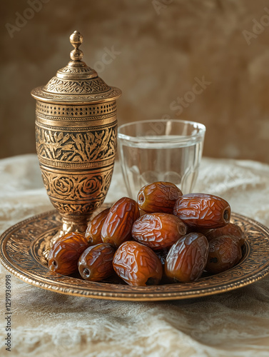 Traditional Iftar Setting with Dates and Water – AI Generated Image