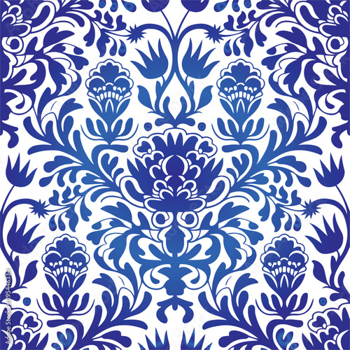 Traditional Russian vector seamless pattern in gzhel style. Can be used for banner, card, poster, invitation, label etc.