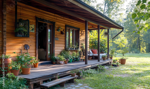 Traditional Wood Cabin with a Charming Front Porch, Ideal for Cozy Mountain Escapes