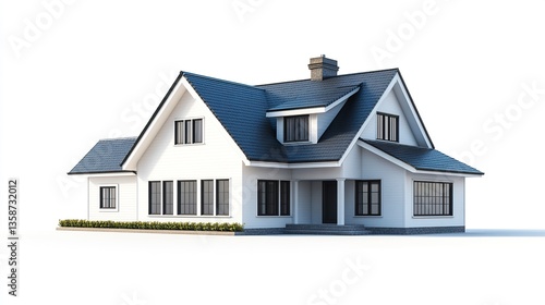 Traditional-style house mockup simple clean lines symmetrical roof crisp and sharp isolated on a pure white background side view.