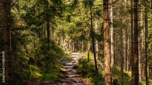 Trail in White Rocks, Stołowe Mountains, Poland.