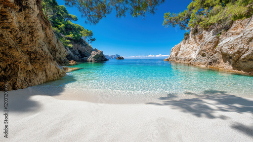 Tranquil beach with soft sand and clear water, perfect for relaxation