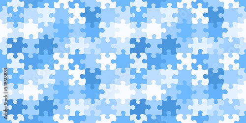 Tranquil blue playful jigsaw puzzle game seamless background texture. Cute kidult abstract 2023 color trend fashion backdrop. Kid's room textile pattern or Baby boy nursery wallpaper. 3D rendering.