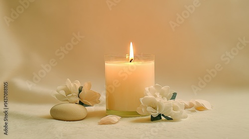 Tranquil Candle Arrangement with Flowers and Stones for Relaxation and Meditation Spaces