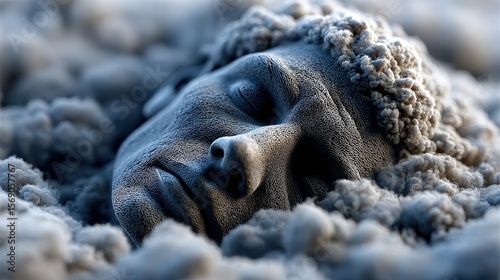 Tranquil Face Emerging from Soft Clouds in Dreamy Atmosphere
