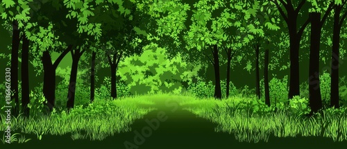 Tranquil Forest Path Pixel Art of a Serene Green Woodland Scene