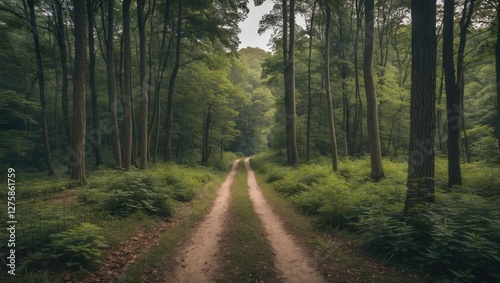 Tranquil Forest Pathways Surrounded by Lush Greenery and Tall Trees in a Serene Nature Reserve