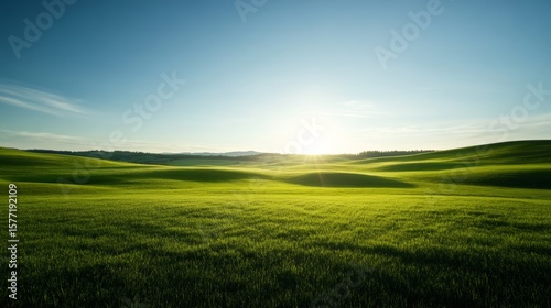 tranquil green pasture with a clear sky above