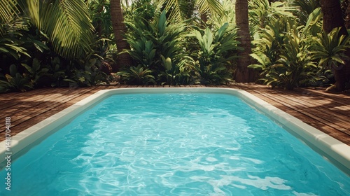 Tranquil Oasis with Crystal Clear Pool Surrounded by Lush Greenery
