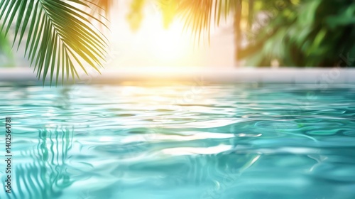 Tranquil Pool Surrounded by Lush Palm Trees in a Bright Sunny Oasis