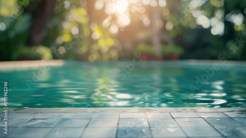 Tranquil Poolside with Blurred Nature Background. Generative ai.