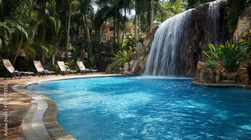 Tranquil resort pool featuring a stunning waterfall oasis inviting relaxation and adventure in a serene tropical paradise for ultimate getaway enjoyment