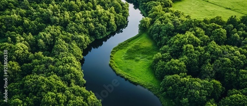 Tranquil River Meandering Through Lush Green Forests top View of Serene Nature with Reflections