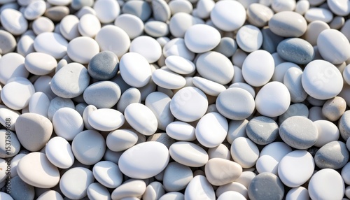 Tranquil scene of smooth white and blue pebbles, a decorative background for design photography