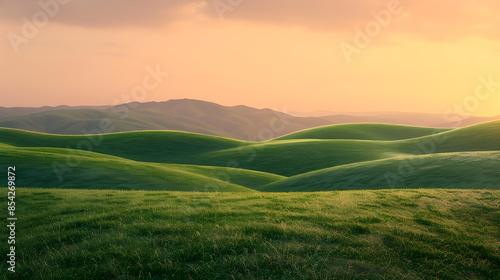Tranquil Sunset Over Rolling Green Hills - A Serene Landscape Evoking Peace and Harmony with Nature