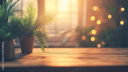 Tranquil Workspace with Plants and Soft Lighting