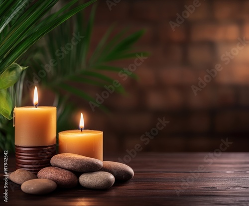 Tranquil zen background with candles and stones for relaxation