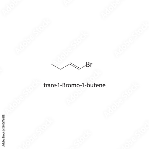 trans-1-Bromo-1-butene skeletal structure. Brominated Alkene compound schematic illustration. Simple diagram, chemical formula.