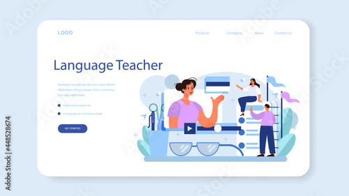 Translator web banner or landing page. Linguist translating document