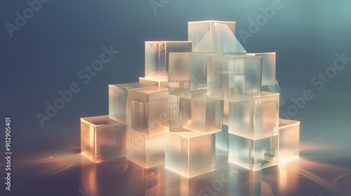 Translucent Blocks Stacked Creatively Under Soft Lighting in Modern Indoor Space