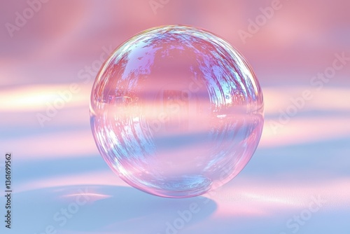 Translucent bubble reflecting a soft gradient of colors under gentle lighting in a serene outdoor setting