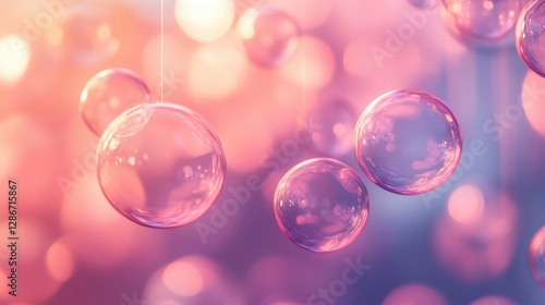 Translucent bubbles gracefully suspended against a dreamy pastel backdrop, creating a serene and whimsical atmosphere.
