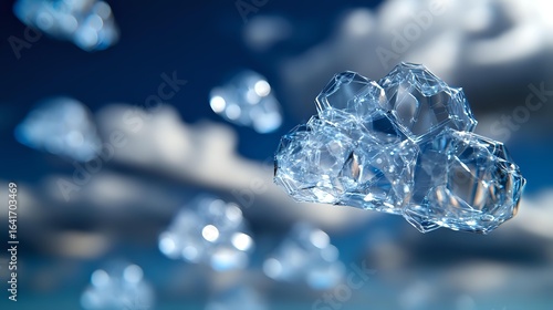 Translucent cloud shapes floating in deep blue sky with soft focus background creating ethereal atmospheric effect. Concept of cloud computing and data storage.