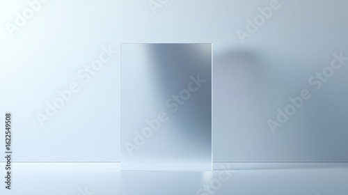 Transparent acrylic panel with subtle surface texture, frosted glass effect overlay, geometric rectangular frame, premium 3d render, soft edge reflection, minimalist glossy finish, clean modern