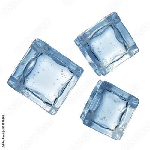 Transparent and refreshing ice cubes isolated against a stark transparent background with a modern presentation.