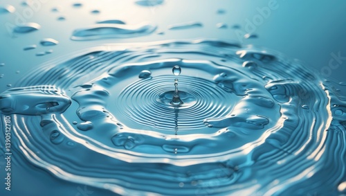 Transparent blue clear water surface texture featuring ripples, circles, and waves on the blue water illuminated by sunlight.