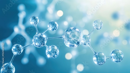 Transparent bubbles of hyaluronic acid serum floating in a blue background, representing deep hydration and skin nourishment.