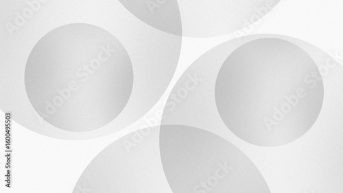 Transparent circle and semicircle shapes with a gray gradient on a clean white background, creating a minimalist overlapping pattern.Rough grain texture.