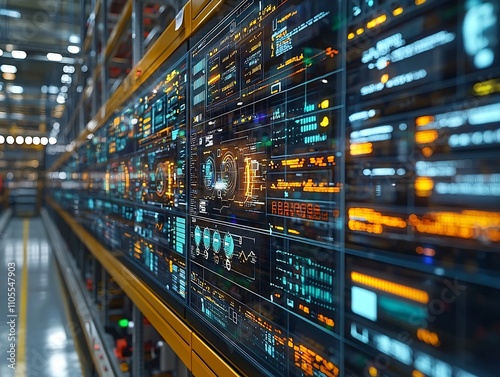 Transparent Digital Warehouse with AI Powered Supply Chain Oversight and Floating Screens