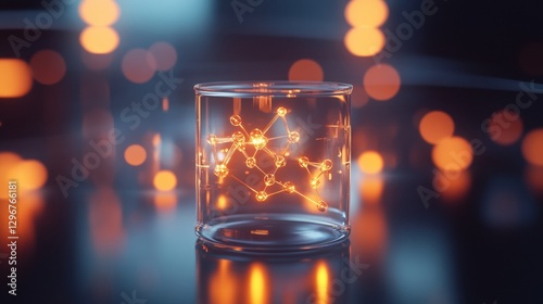 Transparent gas in laboratory beaker showcasing molecular structures under ambient lighting conditions. Generative AI