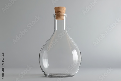Transparent glass bottle with cork, Transparent glass bottle with a cork stopper, showcasing its clear design and simple elegance