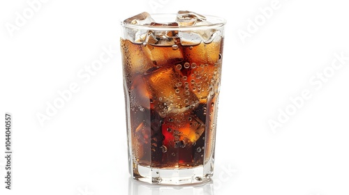 Transparent Glass of Refreshing Cola Drink with Icy Cubes Isolated on White Background