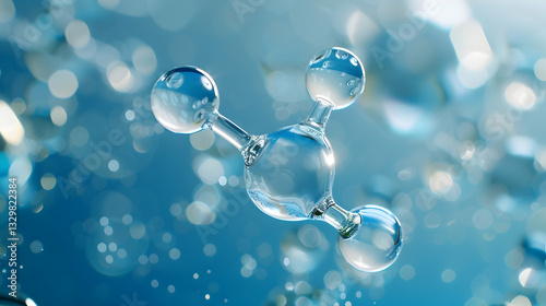 Transparent Molecular Model on a Soft Blue Bokeh Background Scientific and Medical Visualization with Clear Bubbles