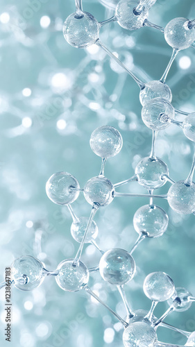 Transparent molecules forming complex structure with light turquoise background