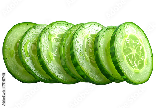 Transparent PNG Minimalist Stylized Cucumber Slices, Clean 3D Illustration