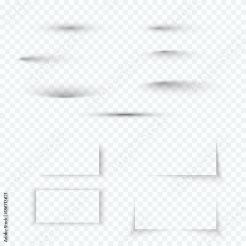 Transparent soft shadow set. Realistic shadow effect collection with soft edge. Vector illustration isolated on transparent background