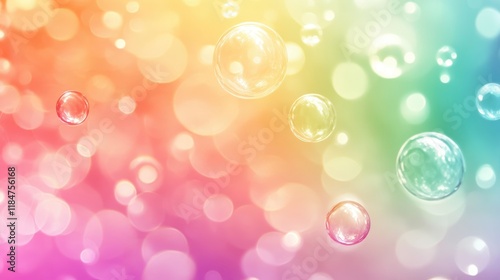 Transparent spheres in vivid rainbow colors floating on a soft gradient pastel background, mesmerizing and dreamy, colorful bubbles, abstract art