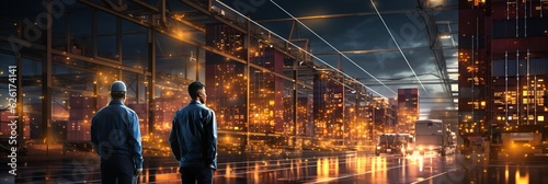 Transport and logistic concept, Manager and engineer checking and control logistic network distribution. AI Generated