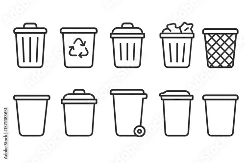 Trash and recycling icon set. waste management outline icons collection