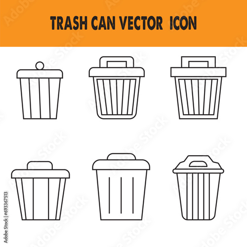 Trash bin with its lid icon set. Open trash bin vector sign. eps 10