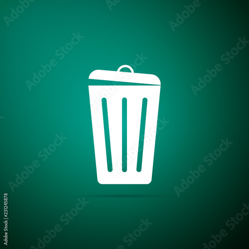 Trash can icon isolated on green background. Garbage bin sign. Flat design. Vector Illustration