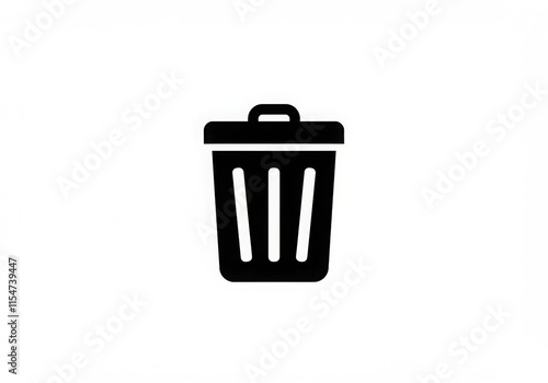 trash can icon, minimalist design, black and white, simple lines, vector graphic style, solid fill