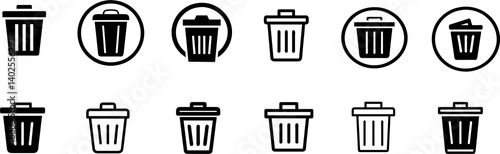 Trash Can Icons: A sleek array of trash can icons, symbolizing waste management, recycling, and environmental consciousness, perfect for various design projects.